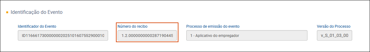 3. No fim da página, em Identificação do Evento, copie a informação do campo Número do recibo;