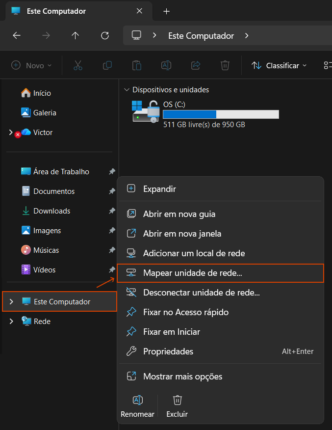 3. Clique em Mapear unidade de rede;