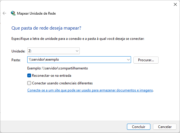 4. Selecione uma letra de unidade (ex: Z:);