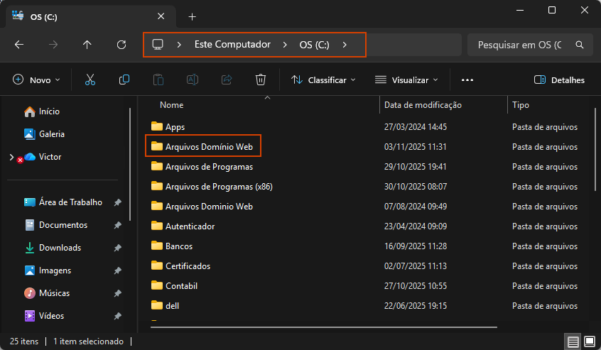 3. Crie uma nova pasta (ex: Arquivos_Dominio);