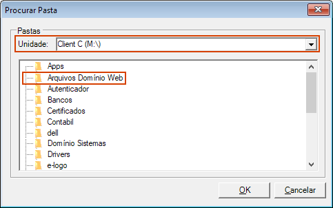 Importante! O Domínio Web só consegue acessar pastas de rede que estejam previamente mapeadas no Windows.