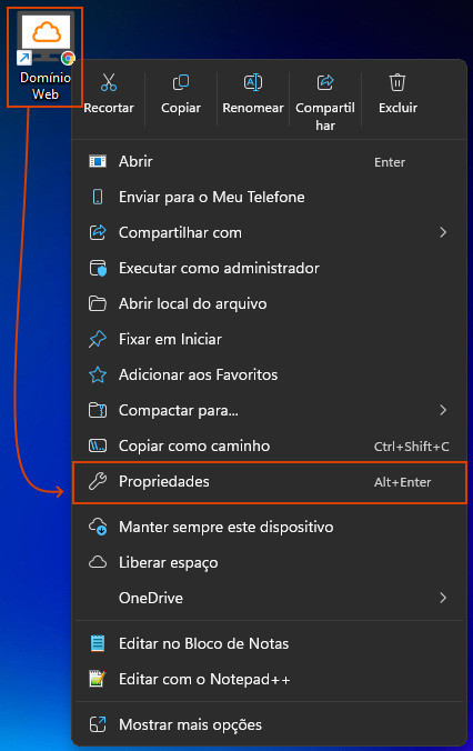 2. Localize o atalho do Domínio Web na área de trabalho, se tiver dúvidas como adicionar atalho do Domínio Web,