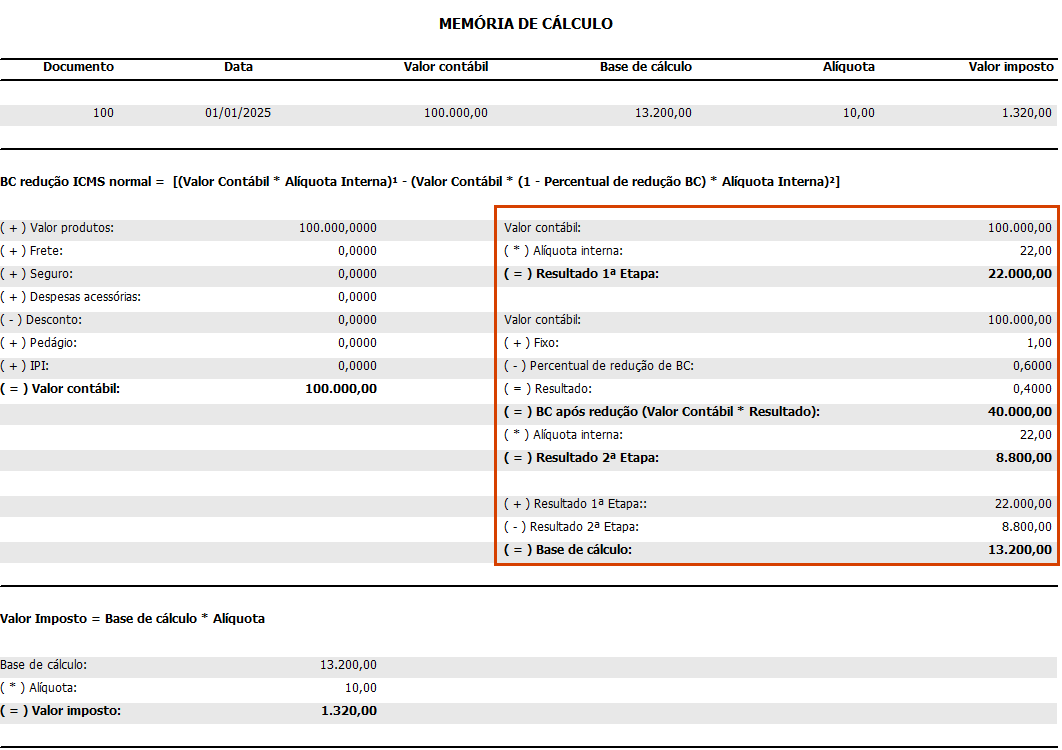 Acumulador de Venda com Redução da Base de Cálculo de ICMS