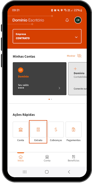1. Na tela inicial, em Ações Rápidas, clique na opção Extrato;
