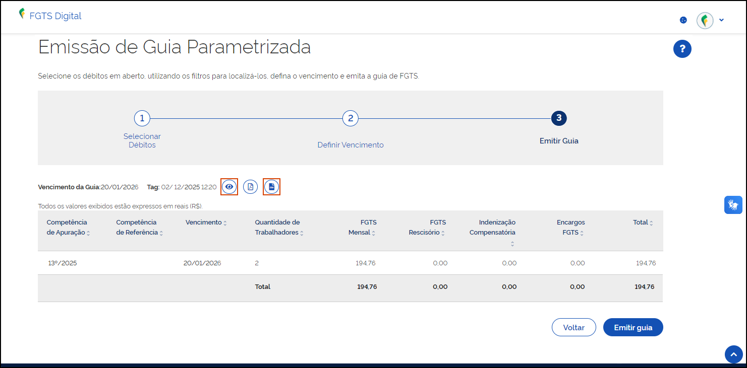 1. No Portal do FGTS Digital, acesse Gestão de guias > Emissão de guia parametrizada;