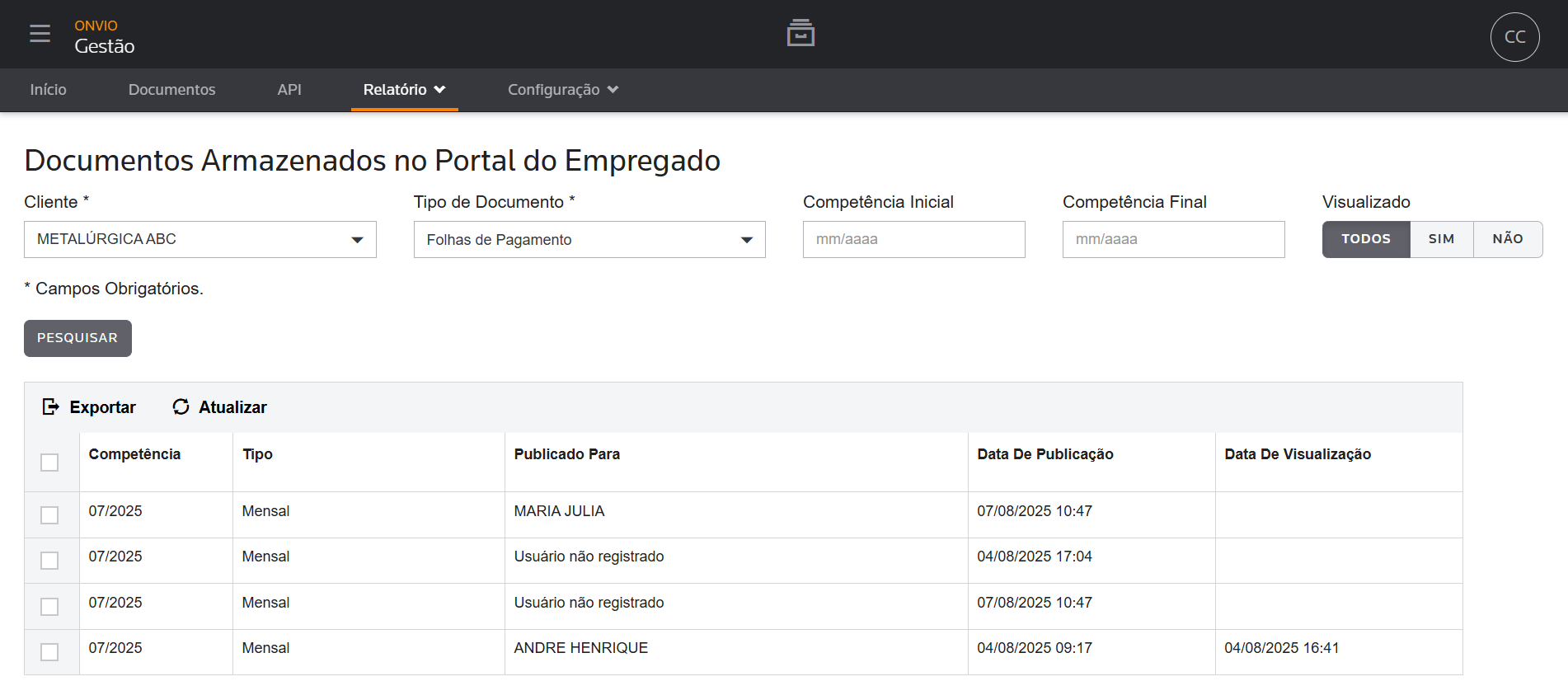 O Portal do Empregado oferece recursos para você gerenciar os documentos enviados, assim você pode verificar ou ou exportar os documentos publicados, além de conseguir acompanhar os status dos empregados, se já estão registrados ou não. Veja como é simples: