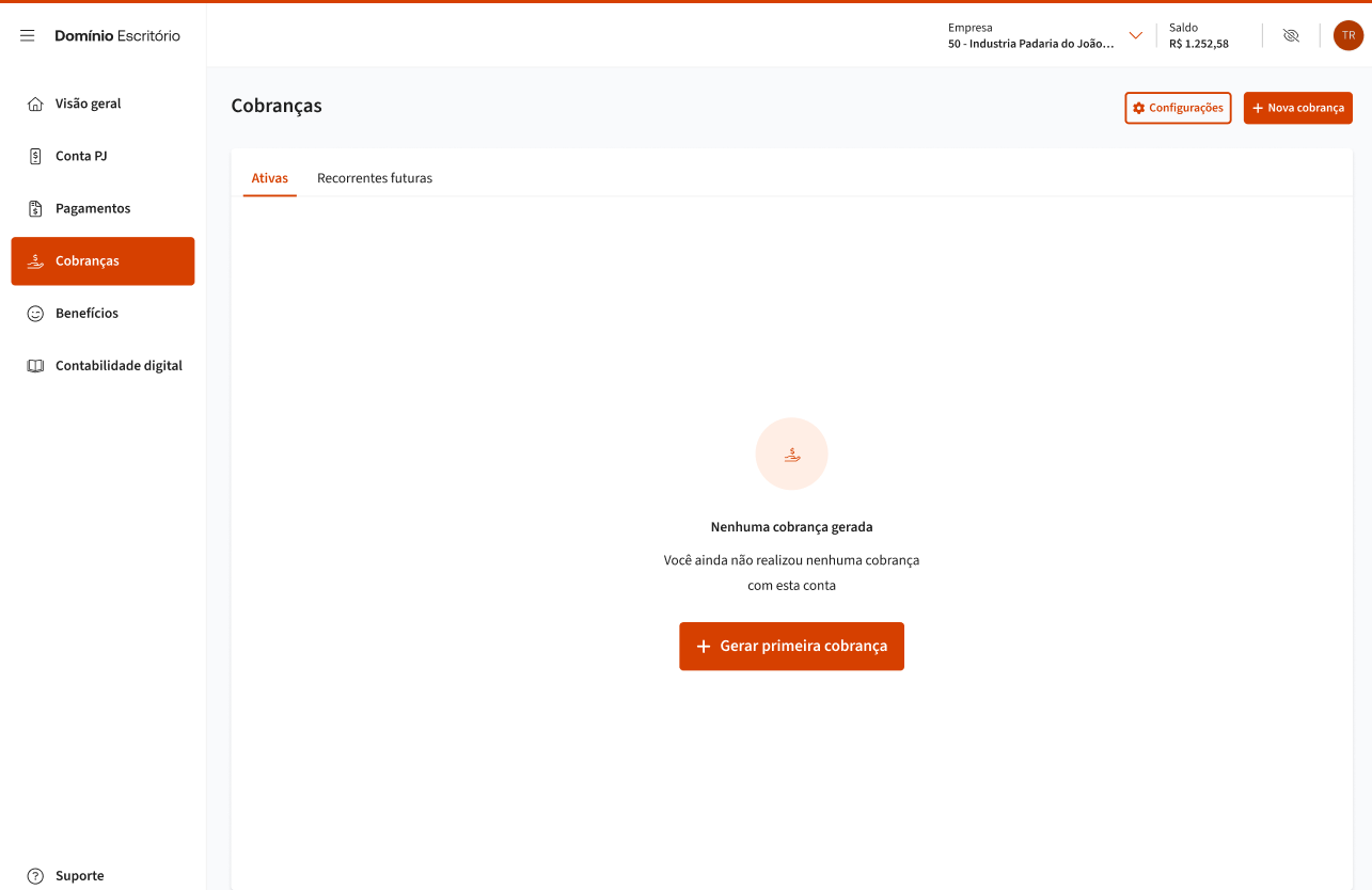 1. Acesse o Portal Domínio > Cobranças e clique em [Nova Cobrança];