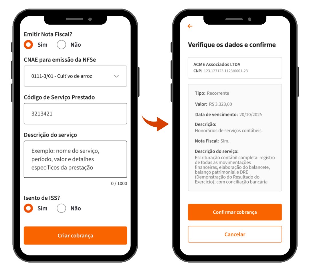 6. Se estiver correto, clique em [Confirmar cobrança];