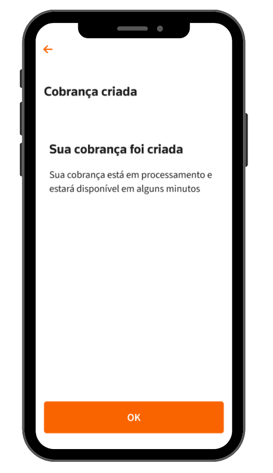 7. A cobrança será criada e estará disponível em alguns minutos;
