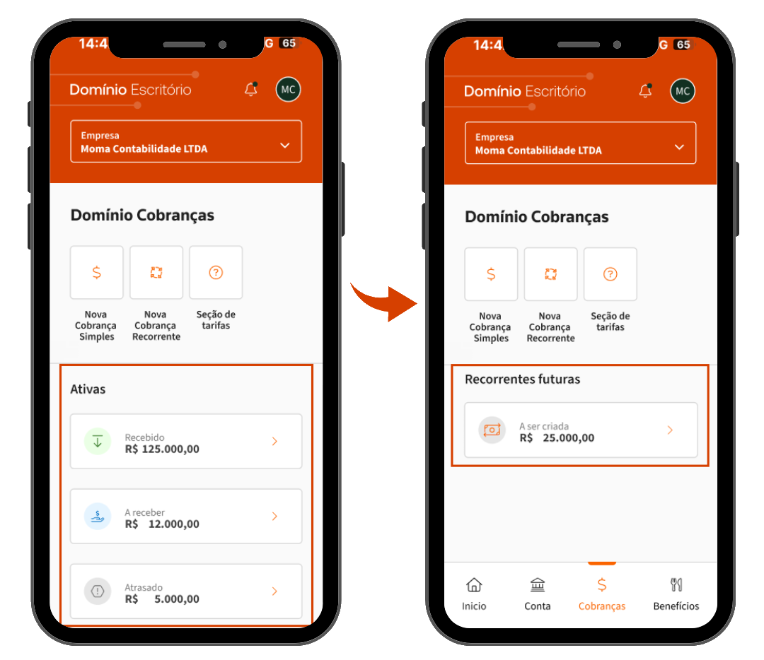1. Veja a listagem das cobranças já recebidas e integradas ao Sistema Domínio;