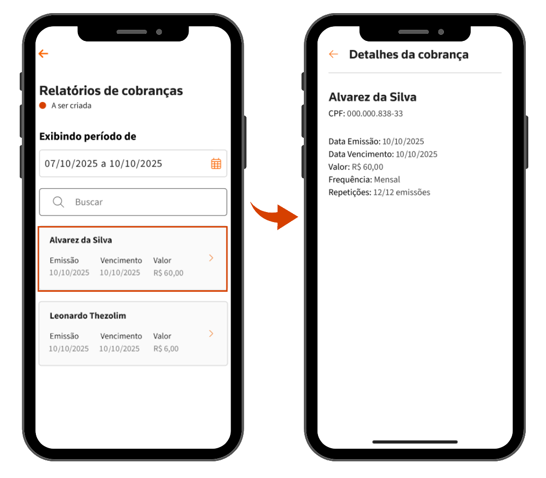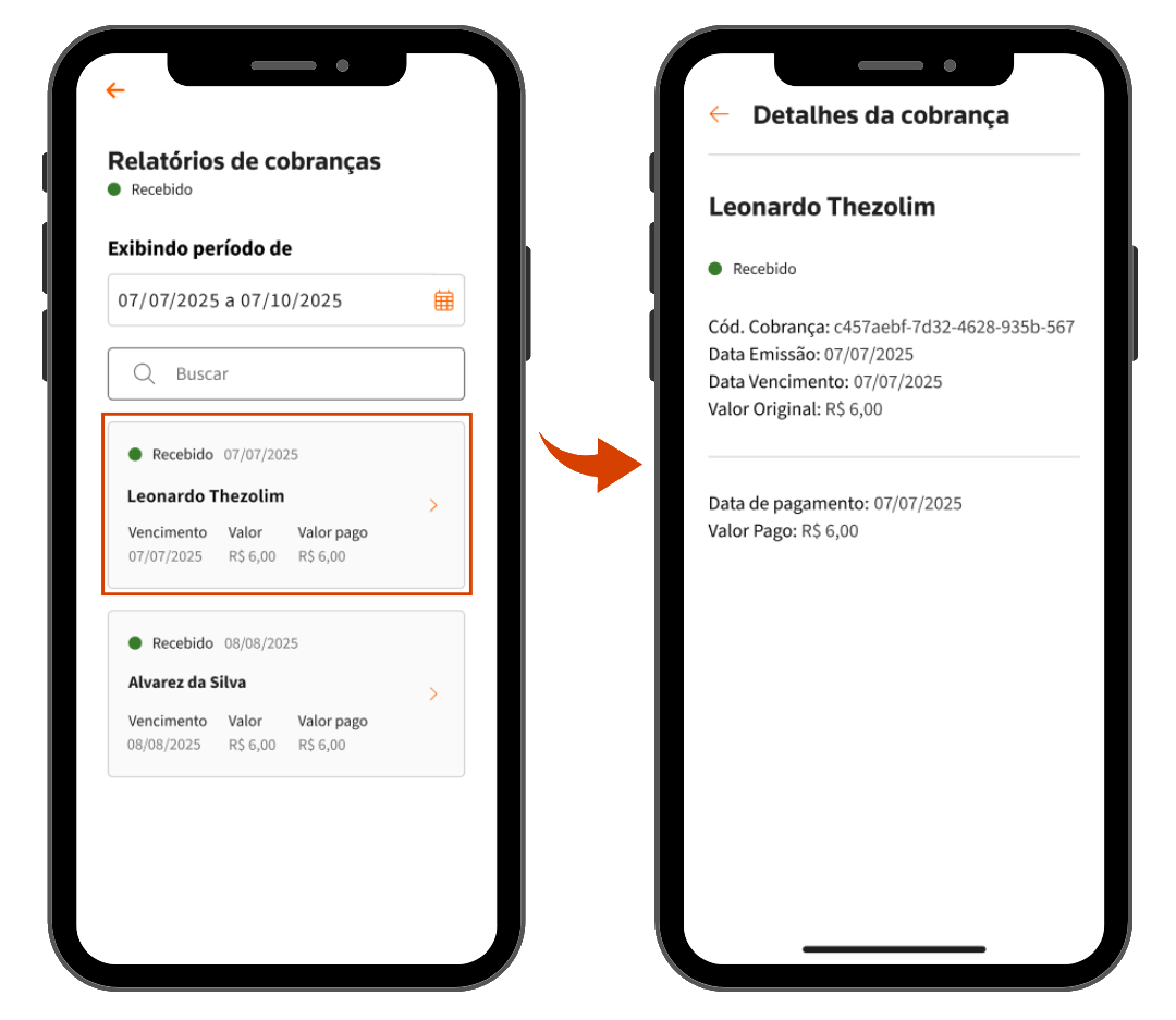 4. Clique sobre uma cobrança para acessar os detalhes da mesma;
