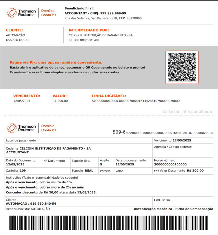 • Gerar PDF do boleto: Permite baixar a cobrança em PDF;