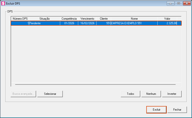 4. Selecione o DPS/RPS que deseja excluir e clique no botão [Excluir];
