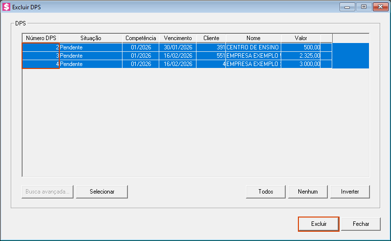 4. Selecione as DPS que deseja excluir;