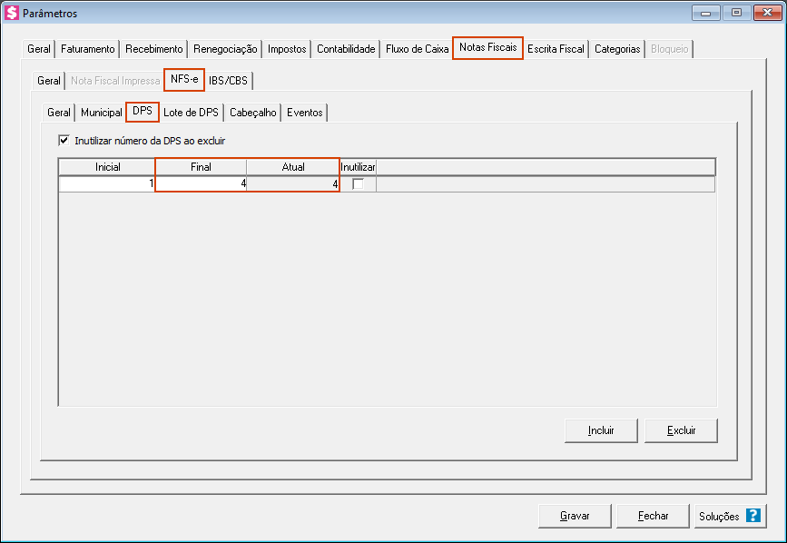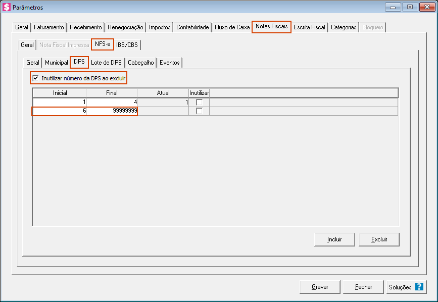 Agora, com a informação do número da última DPS e após a exclusão das DPS do sistema, você deve inserir um novo intervalo, pulando a numeração já utilizada.
