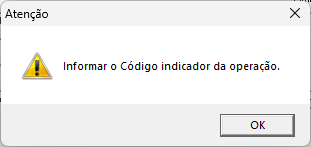 4. Informe o Código Indicador da Operação, pressione F2 para listar as opções e selecione o indicador da operação IBS/CBS;