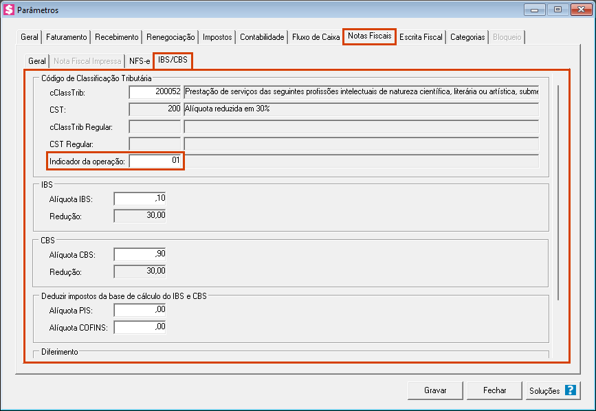 Ao configurar a emissão de NFS-e, a guia IBS/CBS também deve ser preenchida. O campo Indicador da operação é obrigatório e sua ausência gera erro no sistema.