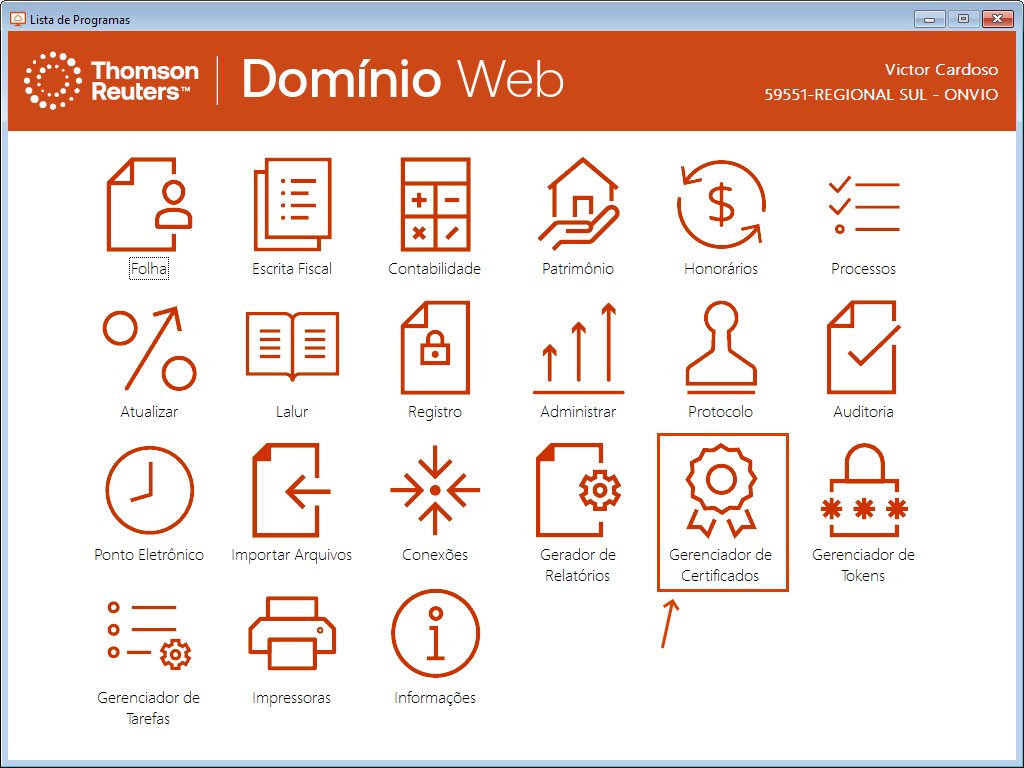 1. Abra o Domínio Web e, na lista de programas, clique no ícone do Gerenciador de Certificados;