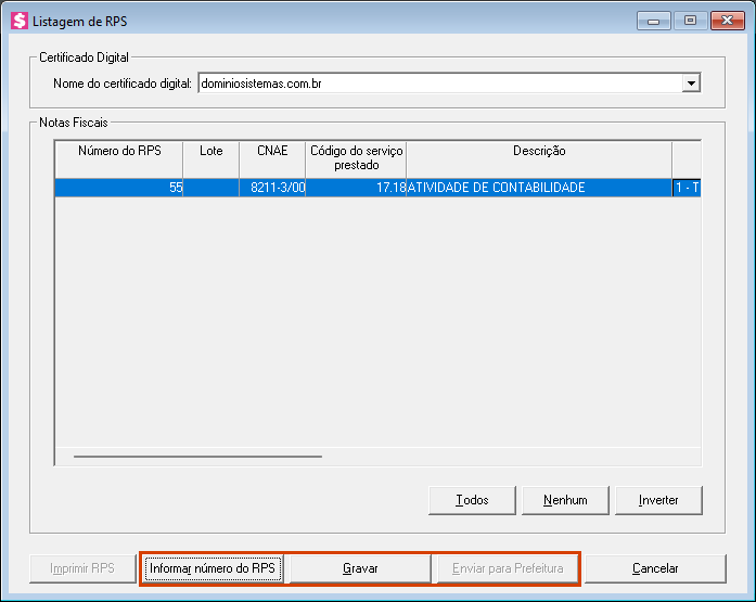 3. Selecione a DPS/RPS com erro e clique em [Excluir];