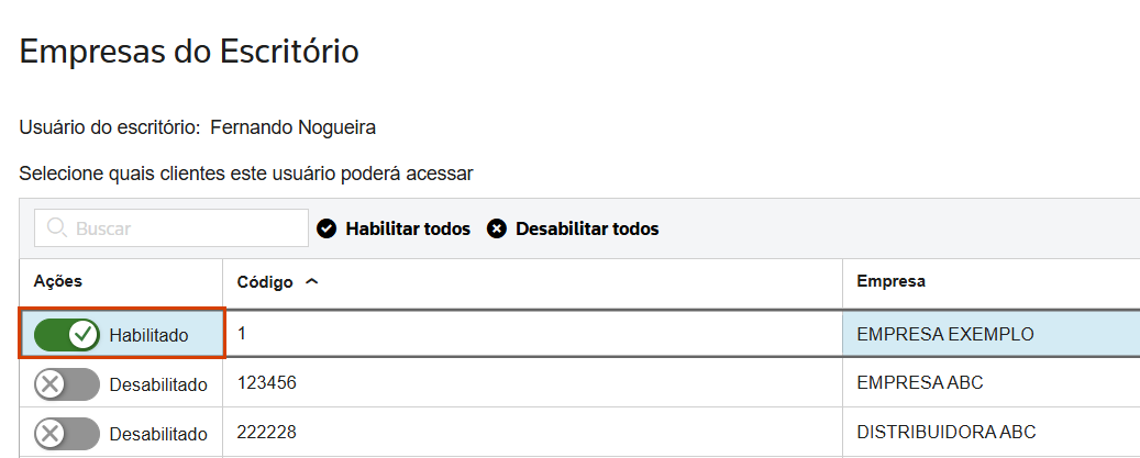 3. Habilite e desabilite as empresas que este funcionário terá acesso nas Solicitações Gerais e Documentos;