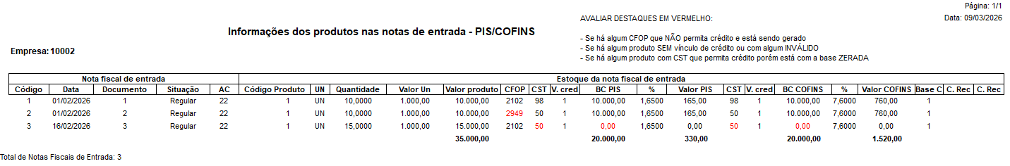 • Produtos com CST que permita crédito porém está com Base de Cálculo zerada.