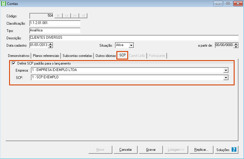 Para incluir a SCP nas contas contábeis da guia SCP dos lançamentos previamente cadastrados, prossiga conforme abaixo: