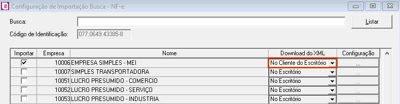 O primeiro passo é informar no sistema quais clientes do escritório utilizarão o Busca NF-e instalado em suas próprias máquinas.