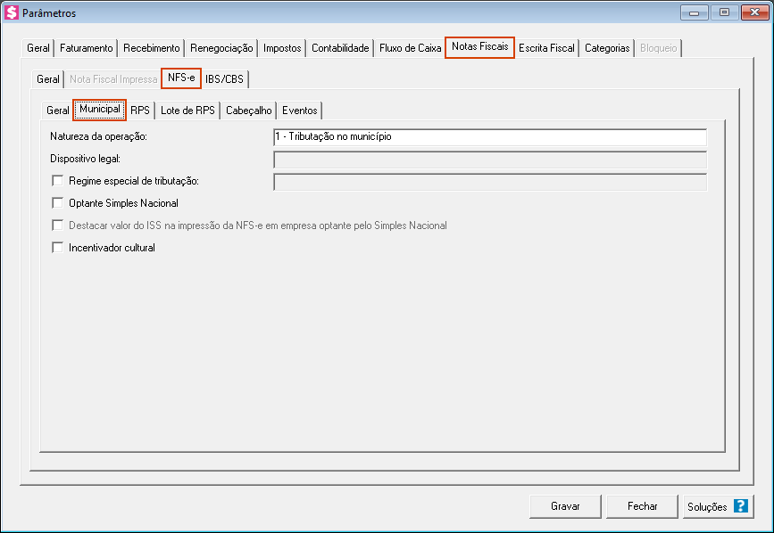 • A configuração dos campos IBS/CBS nos parâmetros é obrigatória para que o sistema possa destacar os impostos nas notas fiscais, independentemente de calcular ou não os valores.