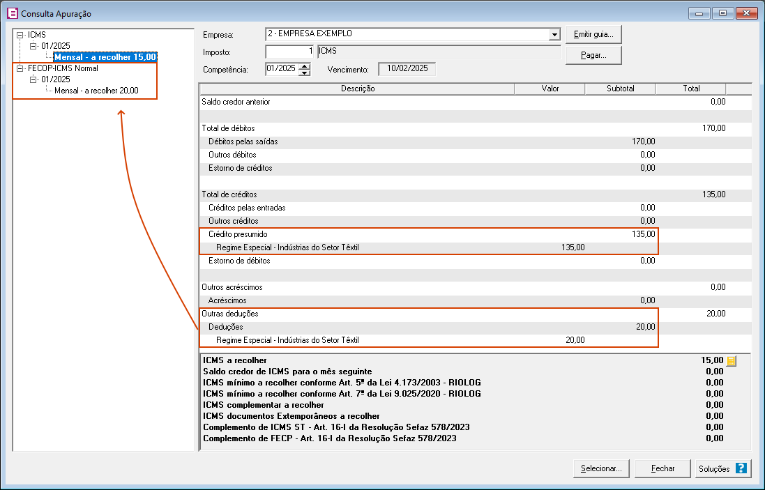 • Caso o resultado fosse negativo, os valores seriam lançados em Outros débitos – Débito referente ao Regime Especial – Indústrias do Setor Têxtil