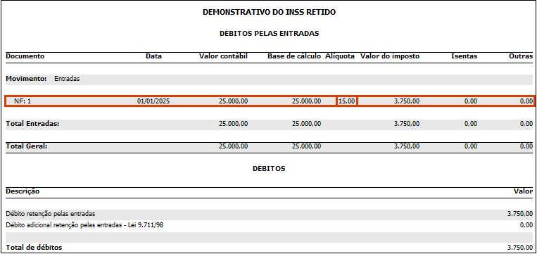 Exemplo: Considerando uma nota fiscal de serviço tomado de R$ 10.000,00 e aplicando um percentual de retenção de INSS de 11%, obtemos a retenção de R$ 1.100,00. Caso seja informado um valor de imposto superior a R$ 1.100,00 a mensagem será apresentada.