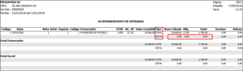 1.2 - Caso tenha a sigla do imposto DIFAL ou FECOP, verifique se existe valor para o imposto informado no lançamento;