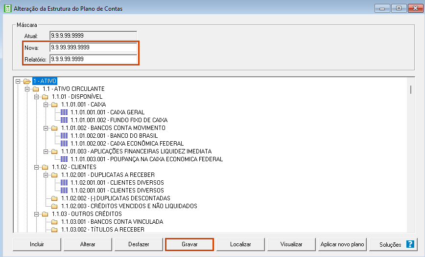 Atual – 9.9.9.99.9999 (Conta Caixa 1.1.1.01.0001);