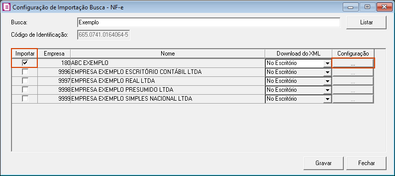 2. Configuração no Busca NF-e Escritório (Domínio Local)