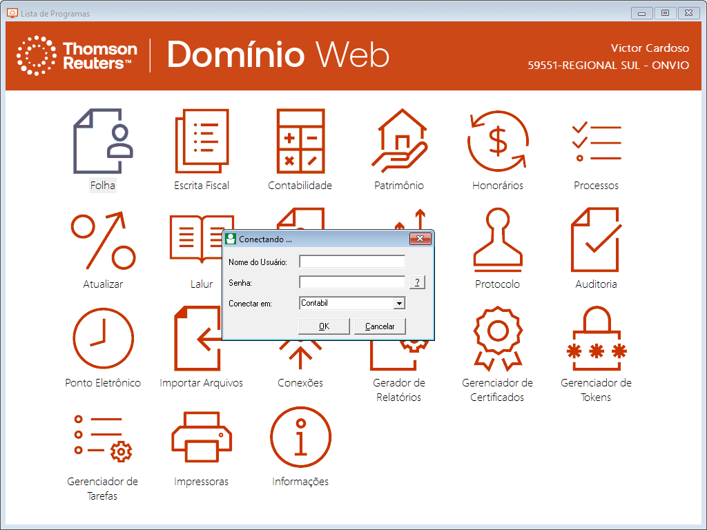 2. Aguarde o carregamento da aplicação. A janela do Go-Global será aberta com os módulos disponíveis.