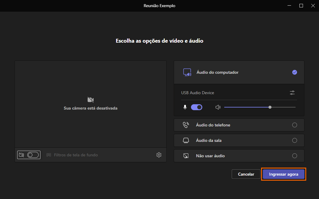 4 - Clique no botão [Ingressar agora] e em seguida já estará conectado à reunião juntamente com o técnico.